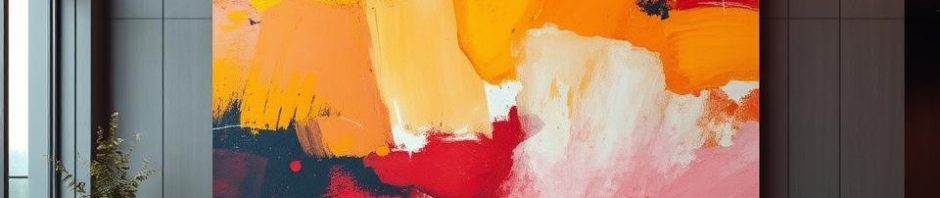 Oversized colorful abstracts work best in living and dining rooms. Such rooms support strong visual statements. A large abstract anchors seating and defines dining zones in open plans. As Houzz notes, bold pieces inject personality—something I see often.